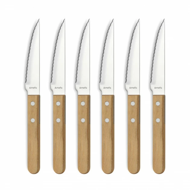 Coffret 6 Couteaux Steak Pizza Bois 21,5 cm Amefa