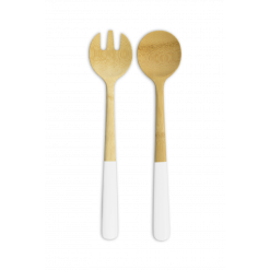 Chaque couvert à salade est fabriqué en bambou massif, avec le détail du manche de couleur blanche pour ajouter une touche élégante. Vous trouverez une fourchette et une cuillère à salade pour servir vos salades, mais aussi vos légumes ou tout autre préparation dans votre saladier, puisque les couverts à salade Pebbly s’utilisent avec les aliments froids et chauds.