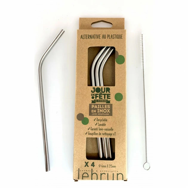 Paille en Inox Coudée 21,5cm x4 Lebrun
