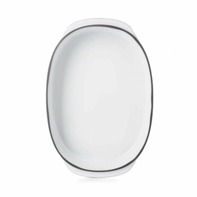 Pour combler une grande tablée avec des plats bien cuits et bien présentés, utilisez le plat oblong en céramique Revol. Profitez de sa couleur céleste pour habiller votre table et vos aliments de douceur et de lumière. La finition du plat de 34 cm est faite par un élégant liseré noir.