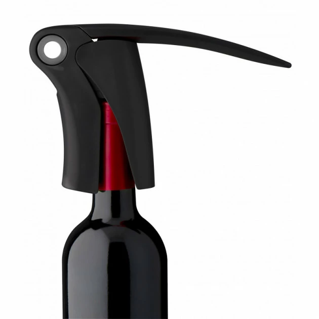 - Soulevez la poignée et disposez le tire-bouchon sur la bouteille